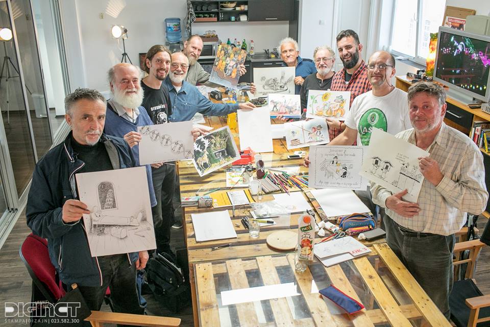 Prva kolonija karikaturista održana je od 2. do 4. novembra, u moderno uređenom “Sandbox” umetničkoom studiju, namenjenom dizajnerima, fotografima i ostalim umetnicima, a koji je deo prostora štamparije Diginet. Sa nama su se družili: Milan Alešević iz Slovenije, koji je izlagao u Argentini, Austriji, Kanadi, Koreji, Izraelu, SAD-u, Francuskoj i širom sveta, dobitnik mnogobrojnih nagrada; zatim, akademski umetnici iz Srbije: Jakša Vlahović, Jugoslav Vlahović, Konstantin Grosu, Nikola Dragaš, Muhamed Đerlek Maks, kao i Nikola Štiklica, Kire Radenkov, Goran Mijatov i Radič Mijatović. Radovi nastali u koloniji, ostaju deo umetničke kolekcije “Sandbox” studija. Događaj je fotografisao Pavle Taboroši.