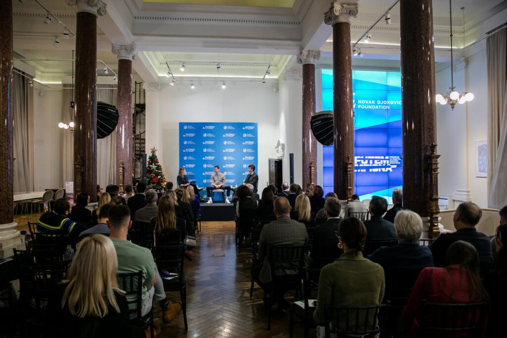 Fondacija Novak Đoković je tradicionalno na izmaku i ove godine organizovala panel svog programa “Putem šampiona” u zgradi Geozavoda u Beogradu, i prvi put ugostila oca i mlađeg sina iz proslavljene sportske porodice Stojačić – višestrukog svetskog i evropskog šampiona i trostrukog najboljeg igrača sveta u Basketu 3×3 Strahinju i njegovog oca Zorana, inženjera arhitekture i nekadašnjeg uspešnog košarkaša.