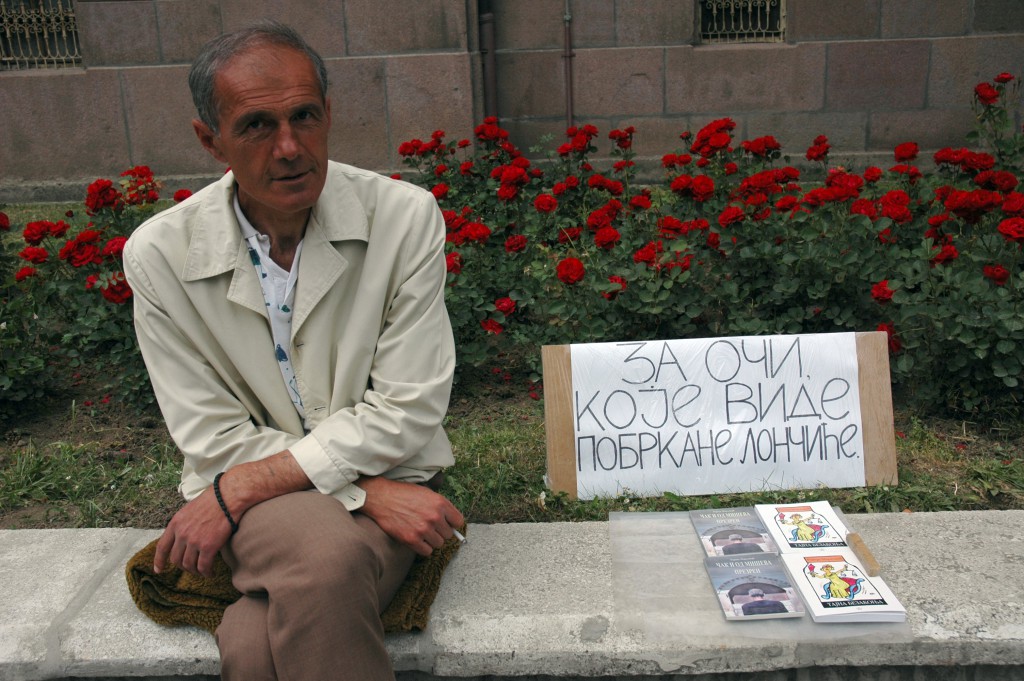 Мени комунална инспекција не дозвољава да продајем књиге, хоће да ме отерају, кажу ми да немам право да продајем књиге на јавној површини! Ја им одговорам да ово није јавна површина већ насеље Светог Саве и Симеона. Пишите полицајци шта хоћете, „ја одавде нећу никада да се померим”. Сликаре сте протерали из града, а уџбенике продаје ко хоће на овом истом месту, испред Суда и на платоу, на паркингу и паркићу.