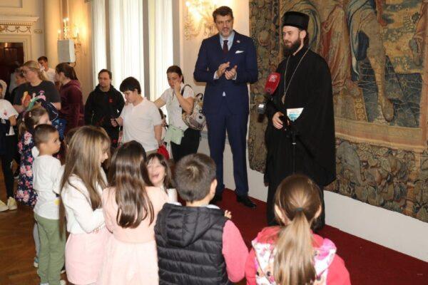 Deca bez roditeljskog staranja, deca sa intelektualnim teškoćama i socijalno ugroženi mališani, uzrasta od jedne do četrnaest godina, iz ustanova i organizacija širom Srbije i Republike Srpske, imala su priliku da podele radost ovog velikog hrišćanskog praznika sa prijateljima Kraljevske porodice Srbije na dva prijema održana u Belom Dvoru.