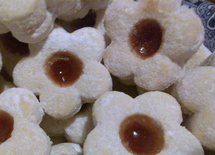 300 gr. masti, 200 gr. šećera u prahu, 2 cela jaja i 1 žumance, 300 gr. oraha(250 gr. u testo a 50 gr. za umakanje) Brašno, Mast,šećer,2cela jaja i 1 žumance umutiti.
