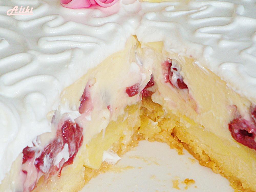Umutiti pavlaku, šećer i vanilin šećer pa polovinu premazati preko piškota. Preko fila rasporediti višnje.