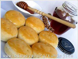 U mlaku vodu staviti šećer, izmrviti kvasac i ostavi da kvasac nadođe. U odgovarajuću posudu staviti maslinovo ulje, dodati nadošli kvasac, so i sa brašnom zamesiti glatko testo. Posudu sa testom pokriti sa čistom krpom i ostaviti na toplom mestu 30 minuta da testo nadođe. Na pobrašnjenu radnu površinu izručiti nadošlo testo. Oklagijom razvudi testo na 1 cm debljine, a zatim sa čašom ili nekom okruglom modlom vaditi krugove. Veoma je važno voditi računa da ne ostane testa, već da se svo testo potroši za 40 kolačića. Ako vam i ostane višak testa, svo preostalo testo stavite u poslednji 40-i kolačić.Slagati na podmazan pleh ili obložen papirom za pečenje. Pokriti sa krpom i ostaviti još 30 minuta da kolačići nadođu.