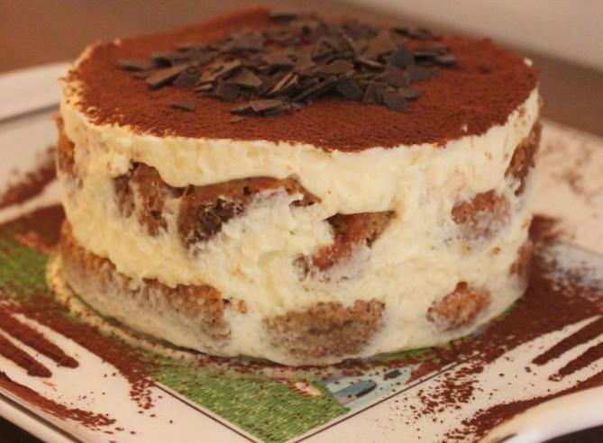 Penasto mikserom umutiti žumanca sa šećerom, a zatim dodati mascarpone sir i sve dobro izmutiti.
