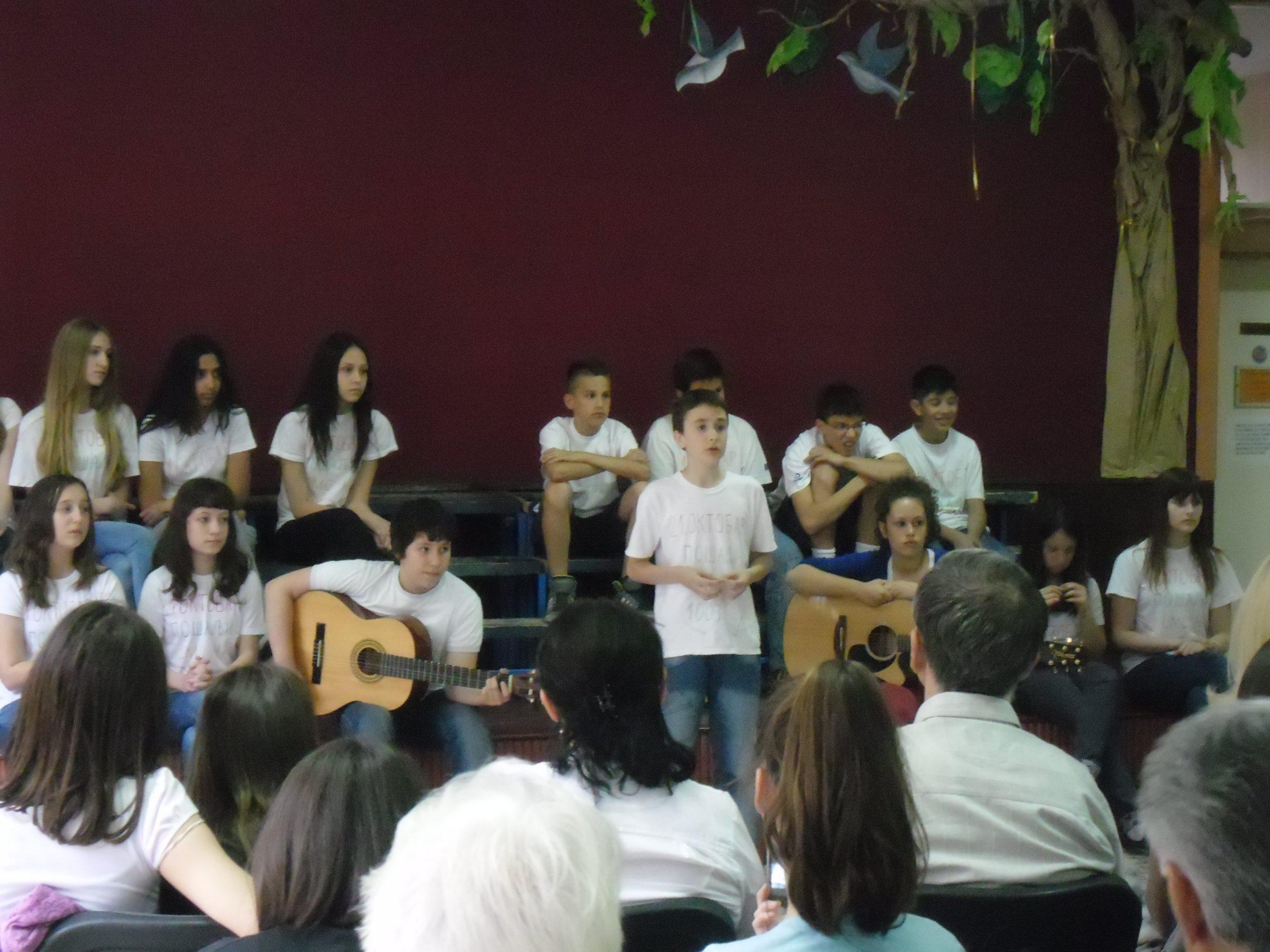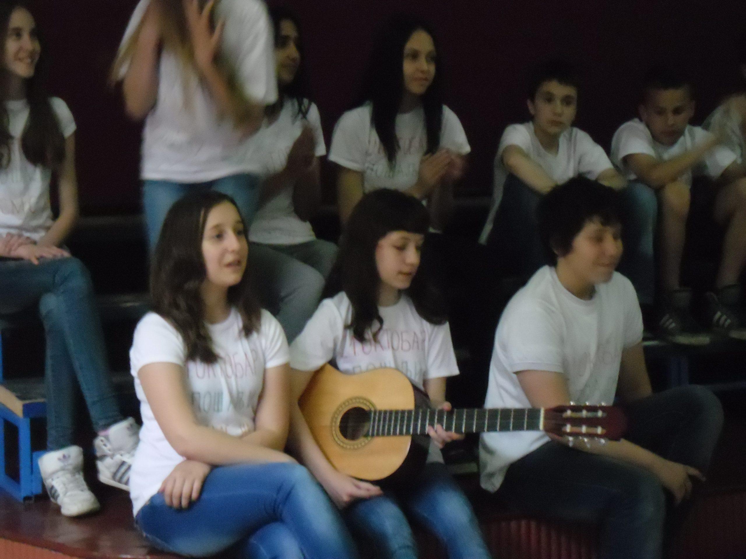 Učenici VI3 odeljenja Osnovne škole „21.oktobar“ iz Kragujevca sa svojom profesorkom Srpskog jezika Draganom Kapor u holu škole, 29. 05. 2014.godine, su svojim roditeljima i posetiocima priredili književno veče na temu „Reči koje drugarstvo znače“. Književno veče ima humanitarni karakter pa je sav prikupljen novac namenjen ugroženima od poplava. Učenici su govorili stihove o drugarstvu naših poznatih pesnika. Delić atmosfere je prikazan na slikama.