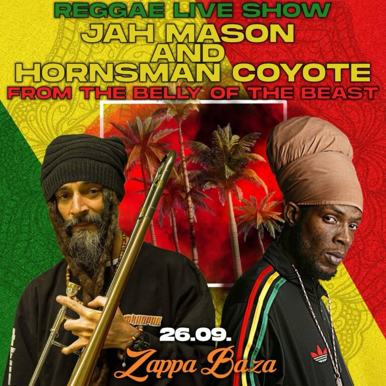 Zappa Baza će u četvrtak, 26. septembra, biti domaćin nezaboravnom muzičkom događaju Reggae Live Show spektaklu sa legendarnim Jah Masonom i talentovanim Hornsman Coyoteom. Ovaj jedinstveni koncert će započeti u 21h i tada će po prvi put ovi umetnici nastupiti zajedno na sceni u Beogradu.