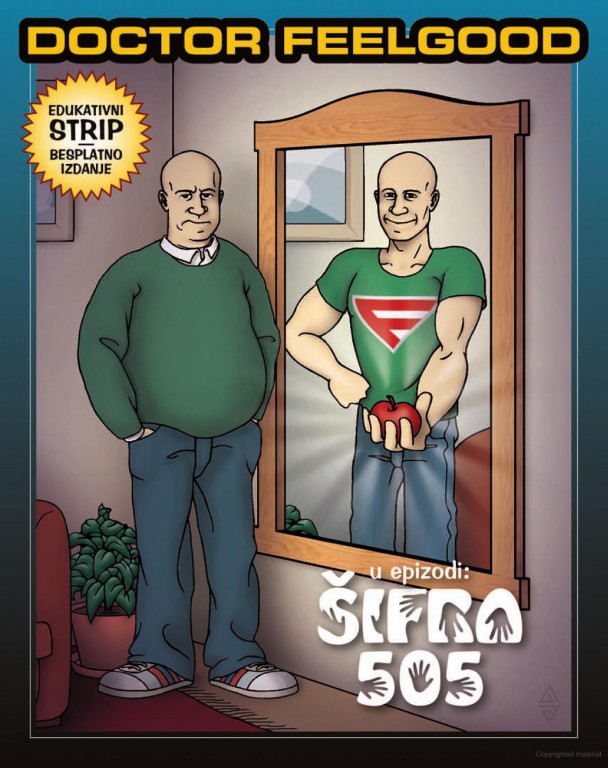 E sad, da krenemo polako sa nedostacima i nedoumicama. Primetićete da sam ovo „autor“ naveo u navodima, i to nije slučajno. Naime, i u medijima i u intervjuima, kao i u najavama (pa čak i u jednom od dva predgovora) koji su propratili ovo štivo, kao tvorac „Šifre 505“ (stripa) se navodi tvorac „Šifre 505“ (programa za vežbe i ishranu) Dr. Saša Plećević, poznat (zasigurno vas ne čudi) kao Doctor Feelgood. Međutim, Plećević nije ni napisao ni nacrtao ovaj strip – scenario je sastavio etablirani pisac Slavoljub Stanković, a crtež zgotovio ilustrator Andreja Jović. I ne, nisam slučajno naveo zanimanja dotične gospode, ali o tom potom. Drugim rečima, Feelgood nije „stvorio“ ovaj strip; u najboljem slučaju ga je aminovao kao projekat i služio kao stručni konsultant i „overseer“ (nadgledač, nadzirač, buljator, džviroman, gleditelj, piljiša, škiljoman, zverkalija, osmatrajber, rožnjačarobnjak, žmirudin). Pored toga što je „autor“ stripa, Plećević je pride i ne jedan, već DVA glavna lika u istom (doduše, i ovo ću otvoreno priznati, ovo zapravo ide u prilog samom stripu), a javlja se i u reklamama/oglasima sponzora (i o tome ćemo nešto kasnije). A s obzirom da je cela tema stripa program koji je on stvarao i usavršavao godinama na planu fitnesa i zdrave ishrane, ono što otvoreno možemo zaključiti je to da je Feelgood bio aktivni učesnik u stvaranju ovog stripa.