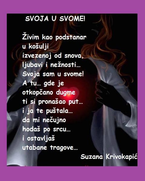 nov 3, 2016 Saljin prozor u svet poezije: Suzana Krivokapić – Svoja u svome SVOJA U SVOME ključne rečiSaljin prozor u svet poezijeSuzana KrivokapićSvoja u svome FacebookTwitterEmailViberReddItWhatsAppTelegramPrintPinterestTumblrLinkedinMixVKDiggLINENaver Facebook Prethodni tekstDa li ste znali: Australija VISledeći tekstGoran Radičević: Limu Salja P. SlovenskiŽivi u Ljubljani poeziju piše od detinjstva piše dosetke šale i aforizme. PROČITAJTE! Mesečina Katarina Branković Gajić: Katarina Branković Gajić - dec 6, 2025 Mesečina Labud N. Lončar – Donijela si nemir… Labud Lončar - dec 6, 2025 Mesečina Poranio Milorad: Poema Zoran Todorović - dec 6, 2025 Mesečina Možeš mladi gospodine Admir Džibrić - apr 28, 2016 Mesečina Admir Džibrić: Već viđeno Admir Džibrić - maj 4, 2017 Magazin Zdravlje i lepota: Šta su Bahove kapi? Ema Vitković - okt 8, 2021 Zanimljivosti Da li ste znali: Popokatepetl Marija Pašalić - mar 1, 2017 Knjige Nihar Ranjan Das, pesnik, urednik časopisa za književnost Ghorsovar: Smisao je učiniti nešto za svet, za sledeću generaciju Valentina Novković - mar 15, 2023 Satatatira Dnevna doza aforizma Srđan Simeunović Sendan - okt 3, 2016 Magazin Poezija je ponovo u modi: „Iz dnevnika srca“ Miroslava Lj. Rankovića Zorica Tijanić - jun 2, 2016 Atelje Atelje: Autoportret (akril, 80x60cm) Mersud Selman - mar 30, 2017 Magazin Jelena Dragičević Berat: KAKO OPROSTITI DRUGIMA? Jelena Dragičević Berat - feb 17, 2018 Otvorena vrata Ministarstvo privremeno vratilo licence nastavnicima Disiću i Blagojeviću Zoran Todorović - maj 14, 2017 Mesečina Maria Victoria: Vestalka Maria Victoria - apr 19, 2025 Mesečina Katarina Branković Gajić: Za vas dvoje Katarina Branković Gajić - maj 31, 2021