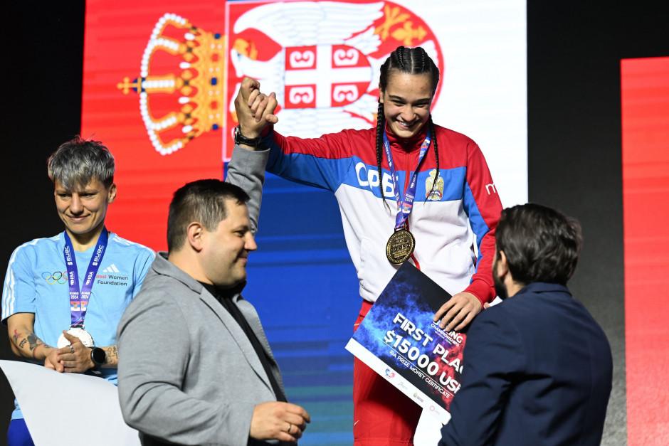 Naša mlada i zlatna zvezda ringa Sara Ćirković je ubedljivo savladala u finalu Meki Loren (Engleska) nakon jednoglasne odluke sudija, dok je Nađ Varga pobodila Turkinju Alejnu Demirkir nakon prekida koji je usledio zbog sudara glavama.