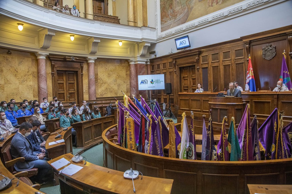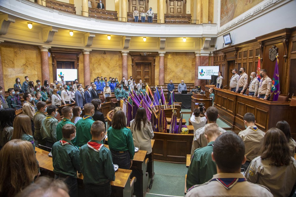 Beograd, 14. novembar 2021. – Savez izviđača Srbije održao je danas u Narodnoj skupštini Srbije svečanu akademiju, povodom 110 godina od osnivanja Izviđačkog pokreta u Srbiji, na kojoj je dodeljen „Zlatni izviđački znak s vencem“ Кraljevskoj porodici Srbije, kao prvom pokrovitelju Udruženja.