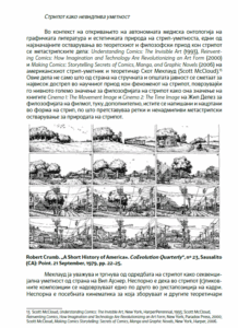 Međutim, gro knjige odlazi na sam strip kao medij, na njegovu ikonografiju, na ideološke okvire pod kojima se razvijao, kao i na sekvencijalnu umetnost generalno. Naravno, tu se sada pokreće ona stara dobra „da li je strip samo na papiru ili je strip postojao od pećinskog čoveka?“; o tome sam podugačko pisao u članku o klišeima u srpskom stripu. Naravno, dijapazon događaja i napretka u domenu stripa pokrivenih u ovoj knjizi je poširok. Dr Karadžov se dotakao i „Zavođenja nevinih“ Fredrika Verthama, i paljenja stripova u Jugoslaviji početkom 70-ih godina prošlog veka, i fenomena „Mirka i Slavka“, i munjevitog uzdizanja alternativnog andergraund stripa u Sjedinjenim državama… Svega tu ima, a posebno o samom stripu kao formi.