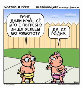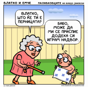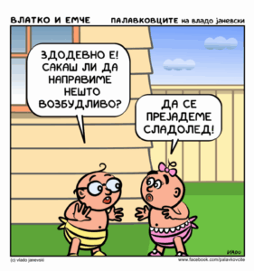 U to ime, uvedimo u priču autora po imenu Vlado Janevski, čoveka koji je objavljivao širom sveta, dobio mnogo nagrada za prozu duže i kraće forme, te aktivno pomagao makedonske autore iz dijaspore i pritom širio kulturu dodatno. Jedan od njegovih side-gigova je rad na stripu, gde je uredno na Fejsbuku kačio table stripa „Palavkovcite: Vlatko i Emče“ (u slobodnom prevodu „Vragolani“). Premisa stripa je jednostavna, kao što i znaju da budu za delo koje je novinski strip po formi, iako ne izlazi u novinama – dvoje beba, Vlatko i Emče, kako prolaze kroz silne svakodnevne situacije.