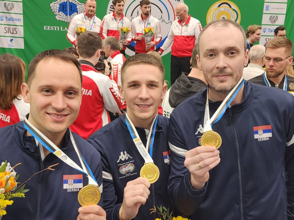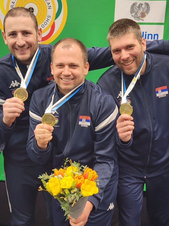 Naši strelci učešće na Prvenstvu Evrope vazdušnim oružjem u Talinu završili su na briljantan način, budući da su sve četiri seniorske ekipe osvojile medalje u timskim takmičenjima. Srbija je jedina zemlja koja je u svakoj od četiri ekipne seniorske discipline stigla do odličja. Naši timovi su osvojili jednu zlatnu, dve srebrne i jednu bronzanu medalju. Muška seniorska ekipa puškom (Milenko Sebić, Lazar Kovačević, Milutin Stefanović) je postala šampion Evrope. Srebrne medalje su osvojili ženski tim pištoljem u sastavu Zorana Arunović, Brankica Zarić i Jovana Todorović, i ženska ekipa puškom (Andrea Arsović, Teodora Vukojević, Ivana Anđušić Maksimović). Muškom sastavu pištoljem (Damir Mikec, Dimitrije Grgić, Duško Petrov) pripala je bronza.