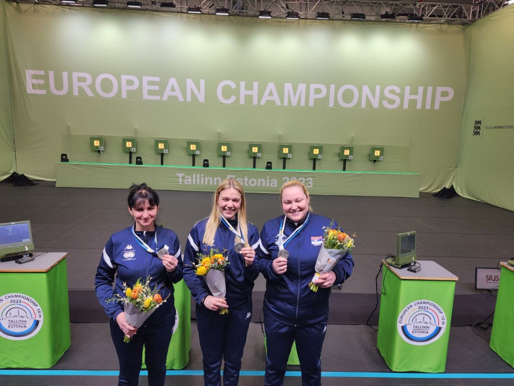 Naš ženski trio pištoljem, u kome su uz olimpijku Zoranu Arunović bile i iskusna Brankica Zarić i debitantkinja Jovana Todorović je polako startovao u kvalifikacijama. U prvoj fazi su zauzele 5. mesto, ali to je bilo samo zagrevanje i formalnost, jer je učestvovalo samo sedam timova i svi su prošli u drugu fazu (po pravilima osam najboljih iz prve faze kvalifikuje se u drugu fazu). Međutim, kada je bilo mnogo važnije, kada je u drugoj fazi počela borba za medalje, naše takmičarke su ušle u odličan ritam i osvojile prvo mesto. U duelu za zlato rivalke su im bile takmičarke Poljske, koje su u drugoj fazi kvalifikacija skupile jedan krug manje od Srbije. U meču za zlato, Poljakinje su ostvarile trijumf od 16:8, a naš ženski trio osvojio je srebrno odličje za Srbiju. Naša zemlja je jedna od najuspešnijih u istoriji ženskih ekipnih takmičenja pištoljem na Evropskim prvenstvima. Srbija, koja je branila titulu prvaka osvojenu 2022, sada u ovoj disciplini ima šest zlatnih, dve srebrne i tri bronzane medalje.