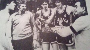 Prvenstvena košarkaška utakmica između Radničkog i Cibone u regularnom toku nije dobila pobednika. Posle kratkog predaha sudija Jakšić pozvao je kapitene Ivkovića (levo) i Nakića (br. 4) da izaberu stranu. I dok je sudija Jakšić pripremao novčić da baci, bek Radničkog Ivković je rekao : – Ne volim da se kockam. Neka gosti izaberu stranu, a ja ću biti zadovoljan ako nama ostanu bodovi…