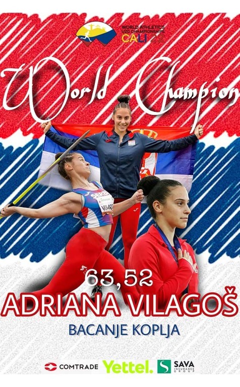Mlada 18-godišnja srpska atletičarka Adriana Vilagoš nastavila je da niže uspehe na Svetskom prvenstvu za juniore u Kolumbiji, gde je osvojila zlatnu medalju. Ona je branila titulu i uspela je da postavi najbolji rezultat otkako se održavaju juniorski šampionati.