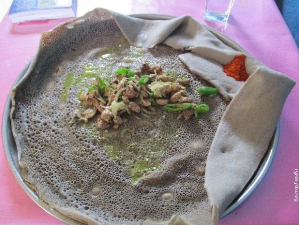 Ako sam se ičega najeo u Etiopiji, to je ova palačinka koja ni najmanje ne podseća na naše (smatram čak da nije prikladno koristiti isti naziv za ova dva posve drugačija jela).