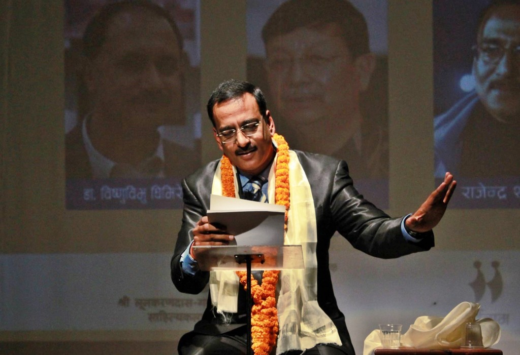 Rađendra Šarma Šalab iz Nepala, poznat je kao ‘Šalab’ u medijima i književnosti. Radi u medijskoj umetnosti više od četiri decenije, kao reditelj i voditelj. Pored toga, radi kao profesor na Univerzitetu “Tribuvan”. Svakodnevno kreira različite vrste audio-vizuelnih sadržaja. Ipak, sebe najpre smatra pesnikom. Najčešće piše kratke iskrene pesme, inspirisan trenutnim osećanjima i dešavanjima. Teži da privuče više interesovanja za poeziju i zato nastavlja da eksperimentiše sa medijima. Posvećen je razvoju nepalske poezije i književnosti.