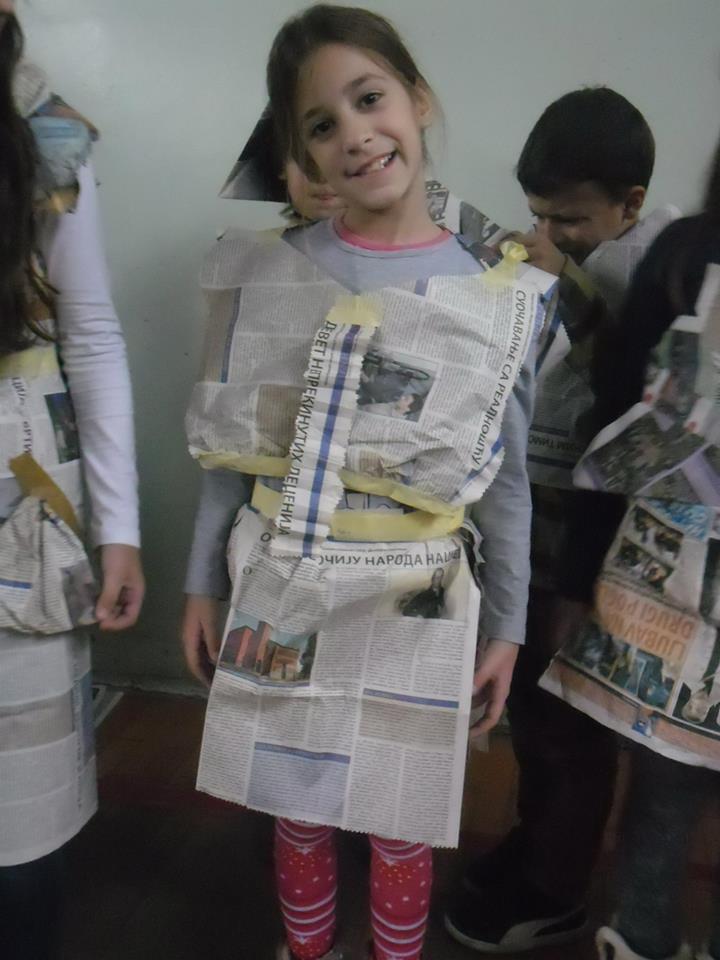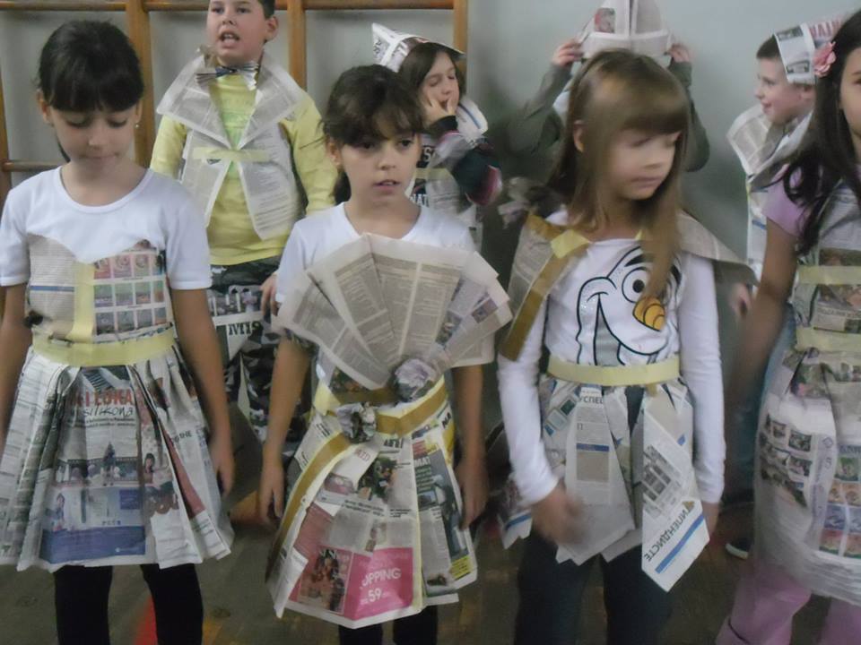 Učenici su prigodnim programom u trajanju od 20ak minuta i kostimirani u odela od papira (novina) pokazali da i u običnim stvarima možemo izgledati lepo i ne moramo ubijati druga živa bića zarad lepote i zabave.