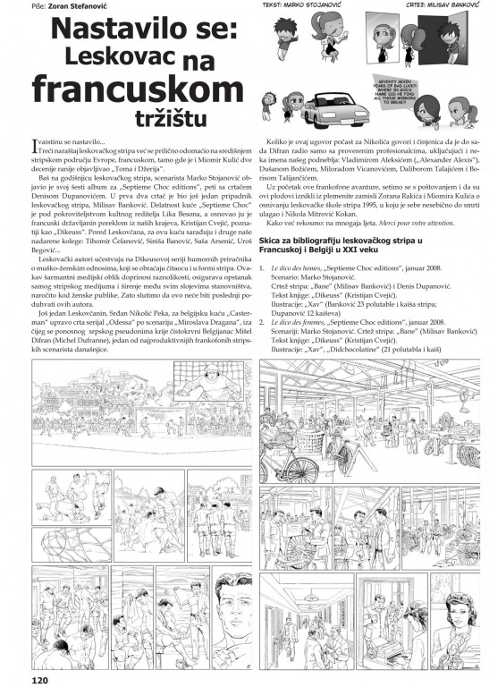 Sam Stojanović je u jednom tekstu o „Leskovačkom stripu“ – u daljem tekstu „LeStrip“, gde bude bilo nužno – naveo da se potreba za takvim štivom javila zbog toga što je Leskovac u monografiji Slobodana Ivkova „60 godina domaćeg stripa u Srbiji“ sad davne 1995. predstavljen samo Nikolom Mitrovićem Kokanom. Ovaj verovatno nemaliciozni propust Ivkova bi značio izostavljanje ravno 50tak talentovanih crtača, ilustratora, tušera, kolorista, scenarista i teoretičara da nije ove prateće knjižice od broja stranica navedenog u naslovu ovog teksta. Svet – ili barem Srbija; ili pak Leskovac sam – ne bi znao da je Kokanov angažman u ovom kulturnom segmentu toliko veliki da zaslužuje podjednako važno mesto u istoriji stripa Balkana koliko i, na primer, Andrija Maurović ili Đorđe Lobačev. Ne bi znao ni koliko je zapravo svestran i na domaćem i na inostranom terenu jedan Mija Kulić u svom radnom rezimeu (videti pod „Talični Tom“, „Tom i Džeri“ i jednu fusnotu pod „Marvel“), ili koliko je Mivel iz potaje uspeo da zaduži ne samo fanove stripa i karikature (sa brojkama od tri cifre u dvocifrenom broju zemalja), nego i onu prostu, namučenu, sirotu raju, i to silinom jednog Toše Borkovića ili Predraga Koraksića Coraxa. Ne bi znao za nemali broj štampanih publikacija koje su održavale strip u Srbiji onda kada je bilo najgore, poput „Đačkog zabavnika“ ili „Arsenala“. Ne bi znao da je rad leskovačkih stripadžija nalazio svoje mesto i u časopisima „Pressing“ (sa sopstvenim godišnjim strip izdanjem), „Gradina“ i „Think Tank“. Ne bi znao da je u školi stripa, nazvanoj po maestru Kokanu, mlada postava koja je, kao što je navedeno, u to vreme obećavala, a sada uveliko radi na stripovima poput izdanjceta u pripremi „Artemis“ (konkretno Aleksandar Anđelković) i domaćeg projekta „Linije fronta“ (Danko Dikić, Marko Serafimović, Nikola Matković, Igor Stojanović)., time dokazujući snagu i integritet leskovačkih ljudi od stripa. Al eto, „LeStrip“ je tu, i tu je da ostane.