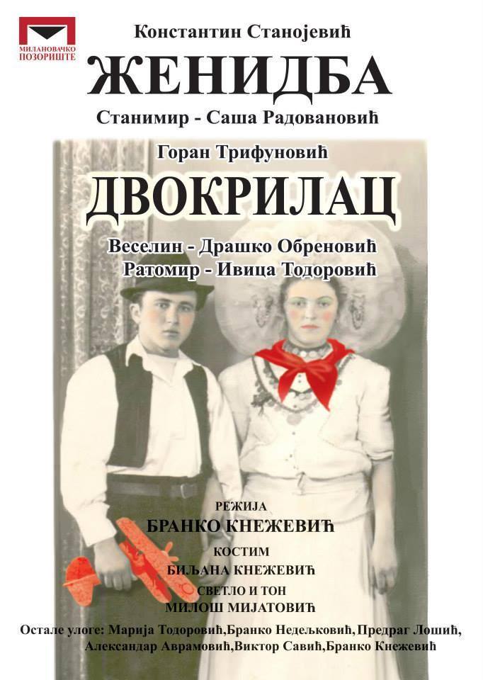 Izvođenjem na sceni „Ženidbe“, Konstantina Stanojevića i „Dvokrilca“, Gorana Trifunovića, Milanovačko pozorište će dati svoj doprinos u afirmaciji pozorišne umetnosti i domaćih pisaca.