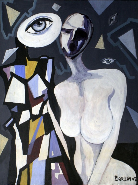 „Слика је критика друштва, прерасла у велико порицање, од негације историско – политичких циљева до уништене сопствене структуре. Универзалана катастрофа је примарни закон чији је саставни део деструкција, односно разарање облика као знка света. Реагујући на тематски подстицај из реалности Драган Барлов проналази сопствени визуелни израз, комбинујући кубистичку традицију са елементима надреалног. У фокусу његовог интересовања је аутентична истина којој се даје предност над пиктуралном лепотом. Ангажованим ставом у приказивању социјалне декаденције аутор акцентује човека као суштину наше реалности.