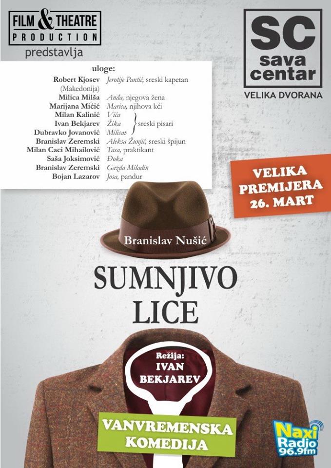 Sumnjivo lice u Sava Centru 26-og marta u režiji Ivana Bekjareva .