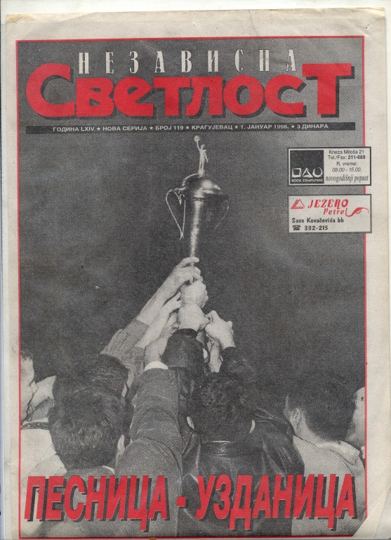 11. POLITIKA 2009.godine jan 6, 2017 „Surova stvarnost” – izbor naslovnih strana Miloša Ignjatovića 01. Prva naslovna u karijeri: SVETLOST 1. JANUAR 98.godina 02.Serija lajf fotografija : BLIC 18 JUL 99 03. SVETLOST 2004. godina 04. GLAS JANUAR 2005.godine 05 SVETLOST 2005.godine 06. SVETLOST 2007. godine POLITIKA 22. OKTOBAR 2007.godine 08. SVETLOST 2007. godine. 09. Svetlost 2007. godine. 10. SVETLOST 2008. godine 11. POLITIKA 2009.godine 12. SVETLOST 2009. godina. 13. SVETLOST 2012. godine. 14. KRAGUJEVACKE 2013. godine. ključne reči„Surova stvarnost” - izbor naslovnih strana Milosa Ignjatovica FacebookTwitterEmailViberReddItWhatsAppTelegramPrintPinterestTumblrLinkedinMixVKDiggLINENaver Facebook Prethodni tekstCOOLumna Deana SailovićSledeći tekstČudesan preokret Noleta za plasman u finale Dohe! Miloš IgnjatovićPriređivač Šumadijskog ateljea. Fotoreporter ,,Blica'', ,,LID-'a'', ,,Sportskog žurnala'', ,,Svetlosti'', ,,KG novina'', ,,Politike''. PROČITAJTE! Knjige Petar Pismestrović: Partija pokera – knjiga karikatura Petar Pismestrović - dec 4, 2025 Fotografija Noletov kalendar za mesec decembar 2025. Zoran Todorović - dec 1, 2025 Magazin VIII Međunarodni festival ljubavne poezije „Pjesnik – Svetionik“ Labud Lončar - okt 20, 2025 Muzika GODINE PROLAZE, UŽASNO MI NEDOSTAJE / Bjesomar ft Osman Ahmed / RIBLJA ČORBA & BAJAGA cover “Dimljena” verzija (bjesomarAudio & video 2014) Ana Mutavdžić - nov 8, 2014 Otvorena vrata Likovni rad dana: Šumska kraljica Jovanka Ignjatović - dec 14, 2015 Otvorena vrata Likovni rad dana: Stanovništvo našeg kraja- narodne nošnje i odeća Jovanka Ignjatović - mar 25, 2016 Otvorena vrata Срећан Бадњи дан! Sunčica Miščević - jan 6, 2015 Muzika Barcelona Gipsy Balkan Orchestra na Dorćol Platzu u okviru Dorćol Sessions-a Zoran Todorović - jun 4, 2024 Otvorena vrata Jezičke nedoumice: Dal’ ili da l’ Zoran Todorović - feb 20, 2019 Mesečina Nebo sa pet zvezdica: Ona Zoran Todorović - jun 18, 2025 Mesečina Mjesec je vajao ženu Zdravka Babić - apr 16, 2016 Zanimljivosti Ginisovi rekordi: Najveći set bubnjeva Mihailo Todorović - jun 30, 2017 Satatatira Lalilint – Marina Raičević Deana Sailović - mar 24, 2018 Satatatira Dnevna doza aforizma Jane Atanasov - okt 5, 2018 Mesečina Saša Mićković: Mojim blizancima Mićković Saša - mar 22, 2018