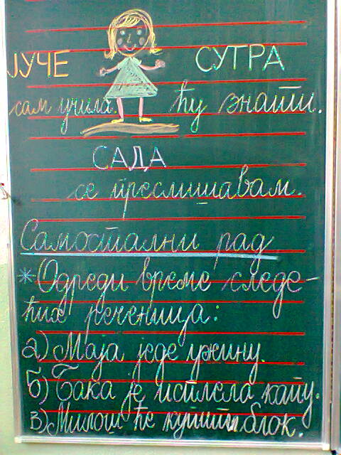 Žarko Đorić i Emilija Hristovski apr 9, 2015 Tabla: Glagolski oblici Žarko Đorić i Emilija Hristovski Učiteljica: Dragana Petrović Odeljenje II1 Osnovna škola “Radoje Domanović” Kragujevac Foto: Z. Todorović ključne rečiDragana Petrovićglagolski obliciOsnovna škola "Radoje Domanović" Kragujevactablaučiteljica FacebookTwitterEmailViberReddItWhatsAppTelegramPrintPinterestTumblrLinkedinMixVKDiggLINENaver Facebook Prethodni tekstRecept: Pohovane gljiveSledeći tekstSveska: Imenice Zoran TodorovićOsnivač „Pokazivača“. Tvorac novakovanja. Čovek koji od života želi sve ili ništa, a trenutno živi negde između. PROČITAJTE! Obrazovanje Srpski đaci doneli četiri medalje sa informatičke olimpijade u Bukureštu Zoran Todorović - dec 5, 2025 Obrazovanje OŠ ,,Dušan Jerković“ iz Inđije pobednik sedmog TreninGO izazova ,,Trčim za školu“! Zoran Todorović - dec 4, 2025 Kultura „Slova i životinje iz Miroslavljevog jevanđelja“ – dragocenost bliža osnovcima i predškolcima Zoran Todorović - avg 13, 2025 Muzika Ivan Zak-Jedna Noć /cover by Leo/ Leo Fabijančić - feb 10, 2017 Satatatira Karikatura dana Tode Blaževski - feb 16, 2019 Zanimljivosti Da li ste znali: Kolibri Marija Pašalić - apr 26, 2018 Priključenija Impresivni Nole u finalu Otvorenog prvenstva Majamija! Zoran Todorović - apr 4, 2015 Mesečina Savest Ana Mutavdžić - dec 10, 2014 Magazin Tijana Milojević – Novinarski začin Tijana Milojević - jul 21, 2018 Zanimljivosti Da li ste znali: Reflezija Marija Pašalić - mar 25, 2019 Priključenija Nole u osmini finala Rolan Garosa Zoran Todorović - okt 3, 2020 Fotografija Sretan rođendan jarcima i Srpska nova godina Miloš Ignjatović - jan 13, 2016 Magazin Roditeljstvo: Zašto roditelji treba često da pevaju svojim mališanima Zoran Todorović - mar 2, 2017 Otvorena vrata Sveska: Mihailo Petrović Alas Jovanka Ignjatović - mar 24, 2015 Fotografija Fotografija dana Marko Marković - dec 9, 2018