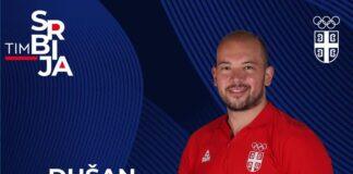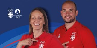 Maja Ognjenović i Dušan Mandić nosioci zastave Srbije na ceremoniji otvaranja...