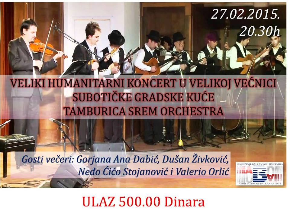 HUMANITARNI KONCERT TAMBURICA SREM ORCHESTRA u Subotici, 27.02. od 20:30h
