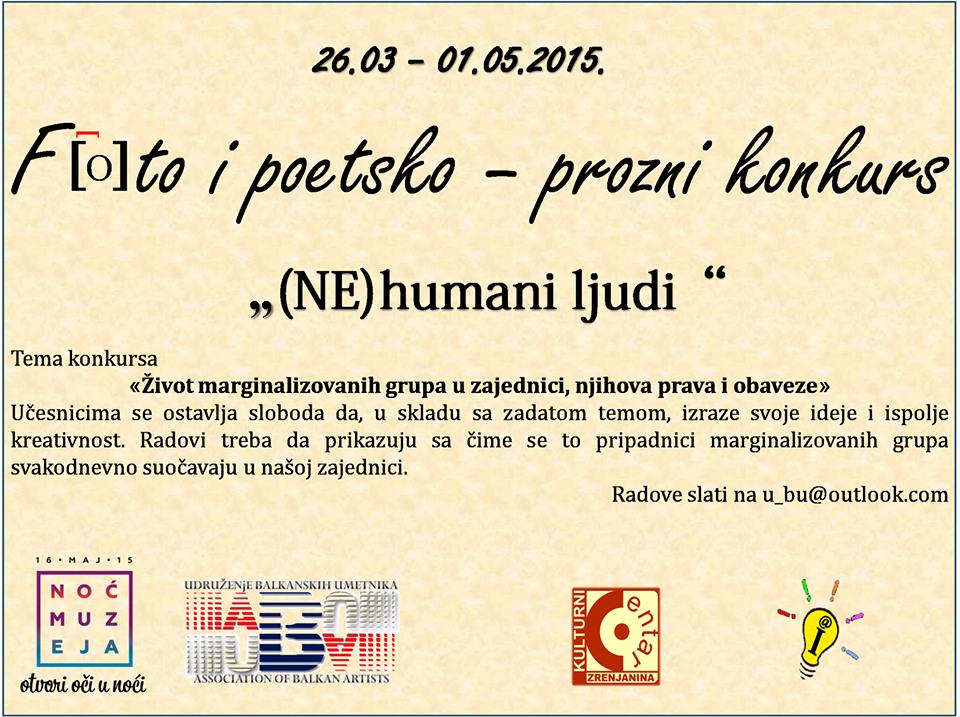 POZIV na FOTO I POETSKO – PROZNI KONKURS „(NE)humani ljudi“