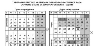 Kalendar za školsku 2022/23. godinu za osnovne i srednje škole