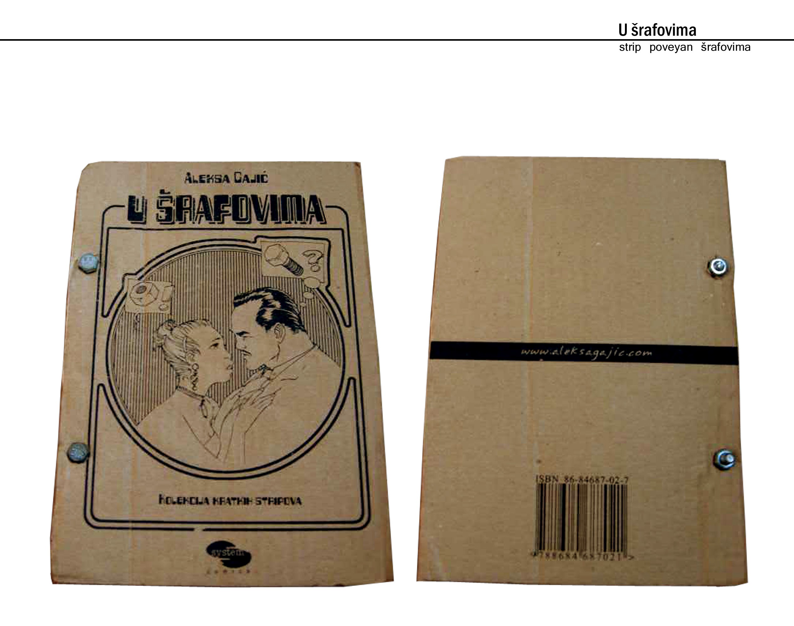 Ova simpatična kolekcija stripova nastalih (većinom) krajem devedesetih je zaslužila svoj pridev „simpatična“ prvenstveno zbog svog materijalnog izgleda – štampana je na jeftinom papiru, uz karton za korice, plus po dva šrafa sa maticama da sve to zajedno drže. Unutar iste se nalazi omanji sijaset kraćih stripovskih priča, svaka sa radnjom luđom od prethodne. Međutim, ovo sočinjenije Gajićeve rane kreativne faze nije u potpunosti odvaljeno od života, već ima malo i autorovog ličnog mentalnog pečata, što se da videti kraćom analizom nekih pričica. Recimo, „Četvrti svetski rat “ daje lep uvid u ljudsku glupost; „Pušenje“ ilustruje ljudske demone kakvi se kriju na najmanje očekivanim mestima i koji permanentno odvjajaju Dete od svog novorođenog sina Čoveka; poslednji strip – nazvaćemo ga „Hiper-deflorator“ zato što razlozi – takođe dotiče ljudsku glupost, ali kroz prizmu satiričice od jedne table; „Poslednja misao Mirodi Jošinarija“ diskutuje o teškoj temi rata i paradoksu spasavanja života. Naravno, tu se nađu i pokoji gegovi, poput „Konačnog rešenja“ gde autor nesavesno potopi pustinju, ili „Flore i faune“ koja se vešto poigrava sa ljudima, kako njihovom anatomskom formom tako i njihovim ličnostima. I naravno, tu vidimo i neke autorove eksperimente, poput igrarija sa Darkom Grkinićem u „Tekst crtež, crtež tekst“. Ako išta savršeno opisuje ovo strip izdanje, to je upravo naslovnica, koja je ujedno crtački bezgrešna, a opet dadaistički apsurdna i nadasve šarmantna. „U šrafovima“ predstavlja lepu uvertiru nadolazećim gajićevskim (ili ipak Gajićevim) sprdnjama.