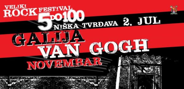 Legendarna Galija, veliki Van Gogh i kultni Novembar zajednički će proslaviti svoje jubileje nastupom na jednodnevnom festivalu „5 do 100“ koji će biti održan u subotu 2. jula na prostoru Niške tvrđave! Pokrovitelj festivala je Grad Niš.