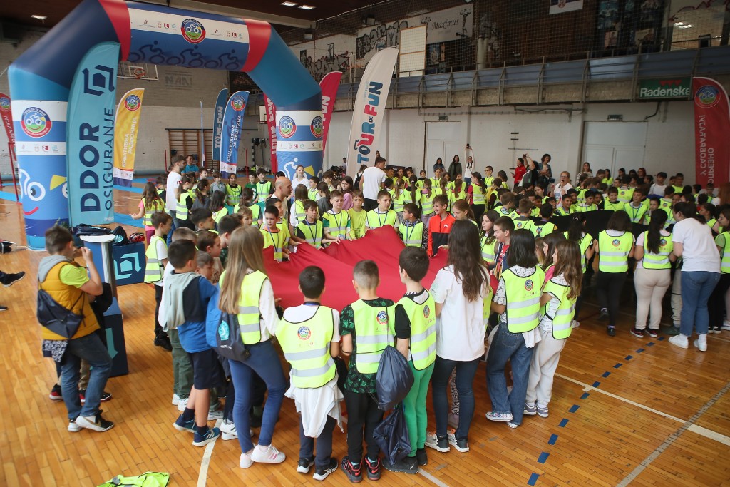 Izvođenje projekta „Gledaj da te vide, vozi se biciklom“ u Sportskom centru „Mirko Sandić“ započeto je uvodnom animacijom prisutnih učenika 5. razreda osnovnih škola iz Beograda uz sportske aktivnosti i muziku, nakon čega se učesnicima obratio domaćin – član Veća Gradske opštine Vračar, gospodin Marko Radunović.