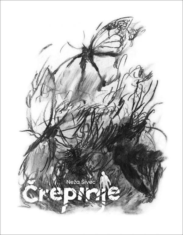 Neretko koristimo izraz „crno na belo“ kad želimo da istaknemo neku neoborivu i očiglednu činjenicu, nešto što je samo po sebi jasno na prvi pogled. Međutim, prvi pogled na korice stripa „Črepinje“ (u prevodu „Krhotine“; u moje selo rekli bi „Срча“) ne evocira baš ovaj koncept. Naime, iako su korice zaslepljujuće bele, a crteži jezivo crni, nije jasno o čemu je reč – „Krhotine“, a na korici insekti, bilje i silueta osobe.