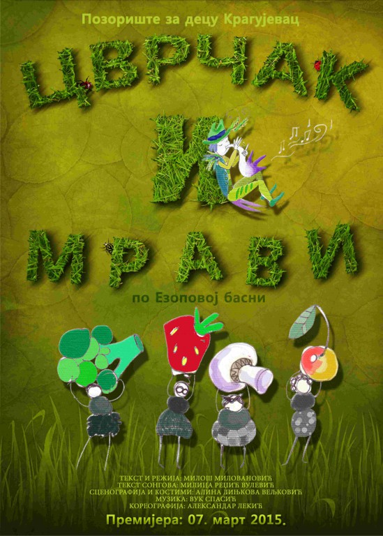 U subotu, 14.marta 2015. u 12h, na repertoaru “Pozorišta za decu” je predstava “CVRČAK I MRAVI”.