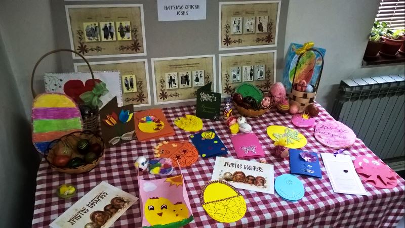 Stihovima i legendama nadmeću se u znanju obogaćujući svoja saznanja novim narodnim običajima i pričama iz različitih krajeva.Uz pomoć voditelja sekcije Mirjane Lazarević, nastavnika srpskog jezika i književnosti, djeca su iscrtavala jaja, čitala zanimljive tekstove o prazniku iz dječjih časopisa, pravila čestitke i, sa velikom ljubavlju i radošću, spremala neobično oslikana jaja kao dar članovima svojih porodica.