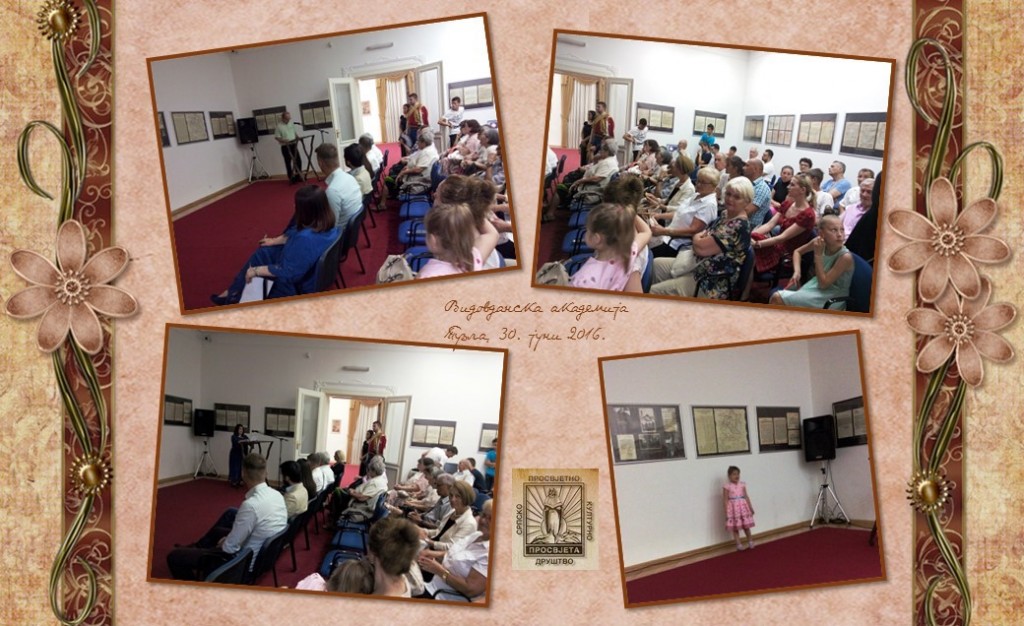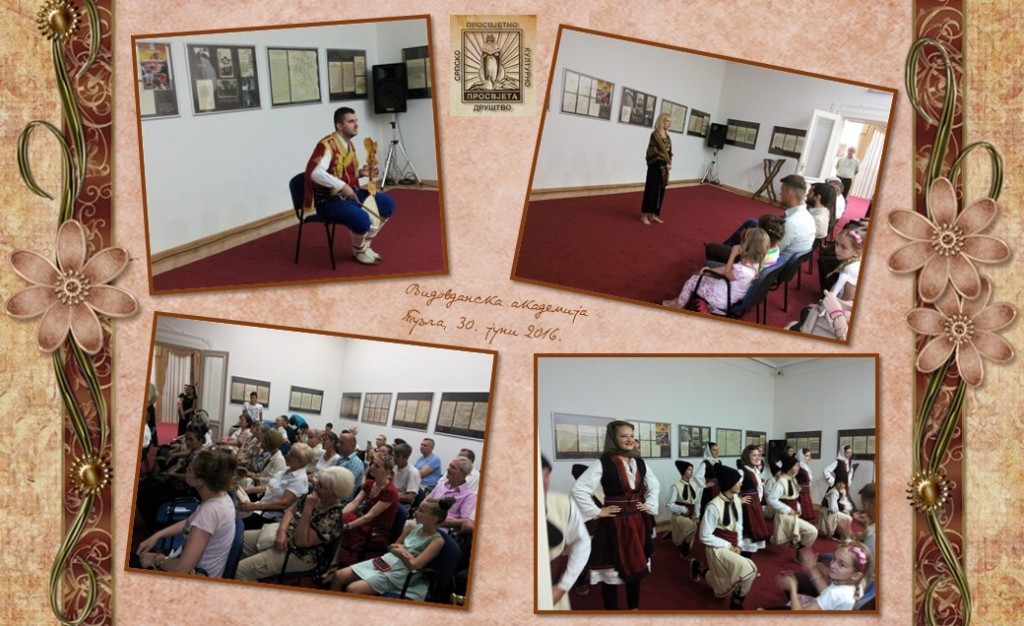 Vidovdanska akademija održana je 30. juna 2016. godine u Vladičanskom dvoru u Tuzli. Organizator ovogodišnje svečanosti je Srpsko prosvjetno i kulturno društvo „Prosvjeta“. Lijepu i nadahnutu besjedu održala je književnica Ljiljana Habjanović Đurović. Program su obogatili i članovi KUD „Ozren“, guslar Ognjen Okilj iz Brčkog, Nina Terzić, glumica iz Tuzle, i članica sekcije „Jutra plavog sljeza“ Teodora Blažanović.