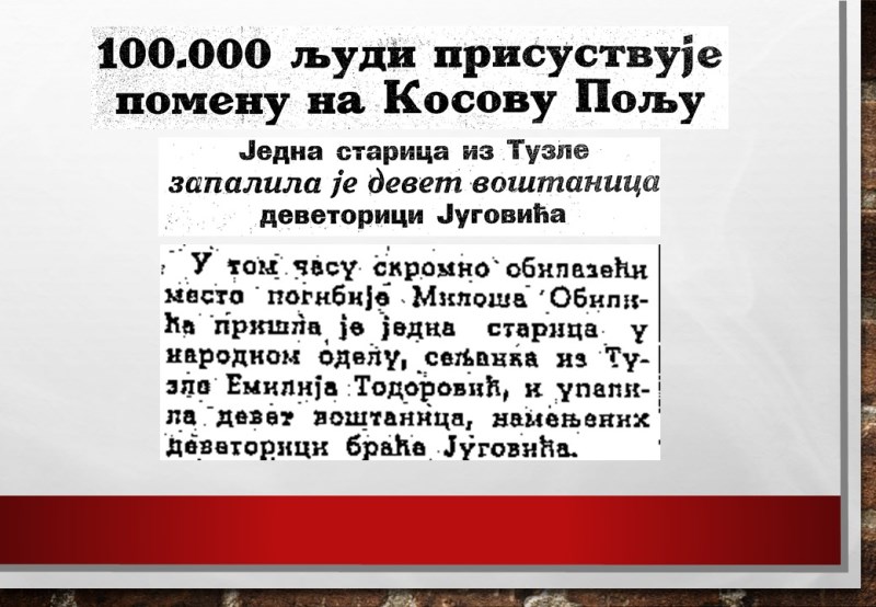 Devet voštanica na proslavi 550 godina Kosovske bitke Emilije Todorović iz Tuzle živa je slika divljenja i poštovanja kosovskih mučenika ovih prostora.