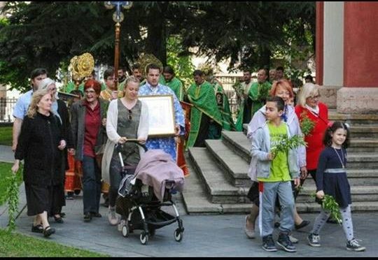 Dvorište Saborne crkve bilo je prepuno vernika iz Šumadijske eprhije koji su u društvu porodica i prijatelja doveli decu da po predivno sunčanom danu tradicionalno proslave ovaj praznik.