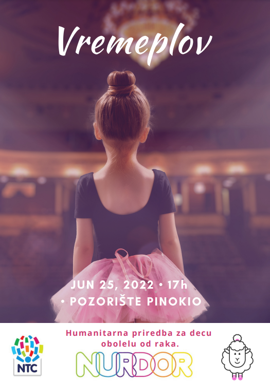 NTC balet, plesni klub ASKA i Nacionalno udruženje roditelja dece obolele od raka (NURDOR) organizuju humanitarnu predstavu pod nazivom „Vremeplov“ u subotu 25. juna od 17 časova u Pozorištu „Pinokio“ u Beogradu.