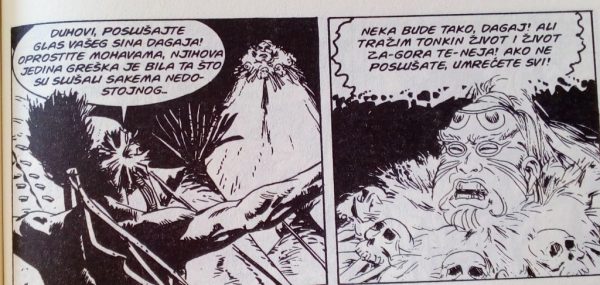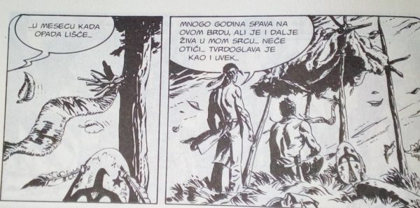 Inače, ovde se pored svega potreba da istaknemo jednu bitnu emotivnu liniju u okviru priče: u epizodi je zastupljeno više scena prisnosti između Tonke i njegove žene Ahte, što prilično oplemenjuje događaje iz jednog ovakvog miljea – tu spadaju i neki njihovi, za Tonku, neočekivani susreti u okviru nekih sekvenci avanture; samoj Ahti i njenoj ličnosti ovde je dodeljen atipično visok značaj, te ona nije samo neka marginalizovana skvo, kako obično biva sa indijanskim ženama: ona je nežna, saosećajna, puna razumevanja, spremna da posavetuje, ali i hrabra i preduzimljiva, spremna da bude i direktni saborac… Nažalost, strada od posledica ranjavanja tokom jednog od poslednjih okršaja sa neprijateljem, i eto, ako čitaoci na početku nisu obratili pažnju, mesto Tonkinog i Zagorovog sastanka na početku priče zapravo je kraj njenog groba! I tako je svoj dubok trag u ovim zbivanjima ostavila i jedna skvo, koja bi se komotno mogla smatrati jednom od glavnih ličnosti u ovoj epizodi, i jedan od značajnijih ženskih likova uopšte u stripovima ovog žanra.