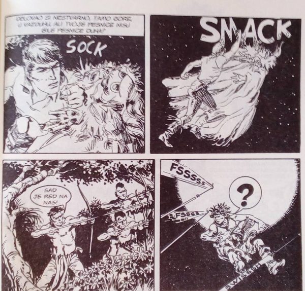 tradicije, ili bar moćni demoni… Kroz daljnjih preko sto stranica desiće se dosta pojedinačnih i kolektivnih okršaja, kako onih klasičnih ovozemaljskih, tako i onih koji kao da spadaju u sfere suočavanja sa nekim uzvišenim silama… Da ne opisujemo sve opasnosti i podvige, razume se da su naši pozitivni junaci uspeli da raskrinkaju i savladaju ove protivnike – većina ih je platila životom završnicu tog sukoba, a jedan od njih, tupavi grmalj iz cirkusa, čak se prijateljski odomaćio u indijanskom selu!