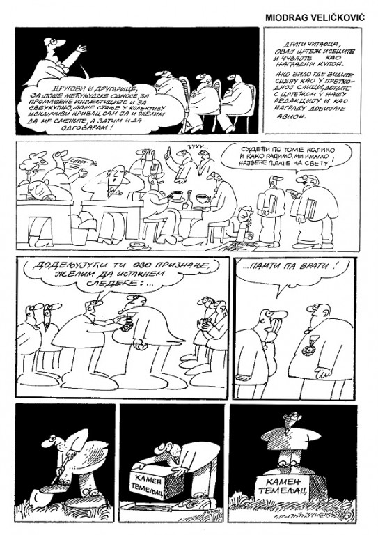 Nebitno, ostavimo to za posle, i pozabavimo se Miodragom Veličkovićem, nadimaknutim Mivel. Mivel je gotovo ceo svoj život, na ovaj ili onaj način, posvetio apsurdu života u zemlji kao što je SFR Jugoslavija, pa SR Jugoslavija, pa Srbija i Crna Gora, te na kraju samo Srbija. Sa svojim karikaturama – primarno zanimanje mu je upravo karikaturist – i stripovima je pobrao preko sto nagrada širom zemlje (sa njenim varirajućim oblikom i veličinom) i sveta. U rodnom Leskovcu ovaj podatak je njegove sugrađane, i one na vlasti i one daleko od bilo kakvog sličnog položaja, komotno zaobišao. Poznavali su ga kao stalnog saradnika nedeljnika „Naša reč“.U ovom listu Mivel je obavljao funkciju karikaturiste, novinara, tehničkog urednika, pisca aforizama i tekstova o stripu. Pravi pokazatelj njegove produktivnosti je strip-kaiš „Bocko“, koji je do Mivelovog izlaska iz „Naše reči“ redovno nalazio utočište u ovom leskovačkom nedeljniku. Dok su njegovi belosvetski uspesi ostali belosvetski i mahom nepoznati unutar granica rodnog kraja, „Bocko“ je bio i ostao lokalni fenomen. Nije doživeo slavu Coraxovih ili Borkovićevih karikatura, barem širom zemlje. Razlog više zašto je albumsko izdanje „Best of Bocko“ bilo nužno.