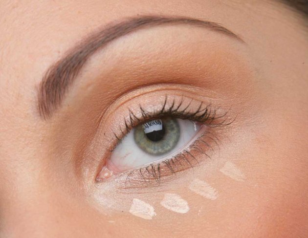 2. Kamuflirajte tamne podočnjake korektorom u kremi. Malom kozmetičkom četkicom nanesite tri tačke ispod donjeg kapka, od spoljašnje ivice do mesta gdje se završava podočnjak. Razmažite korektor nežno tapkajući četkicom ili prstom. Za pokrivanje fleka i akni upotrebite gušći korektor za lice, i nanesite ga direktno na vrh akne ili fleke malom četkicom zaobljenog vrha.