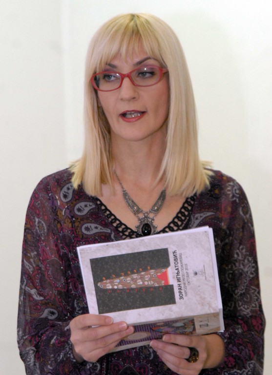 „Поштована публико, вечерас имамо прилику да се визуелно закотрљамо унутарњим световима Зорана Игњатовића. Неће нам бити нимало лако пошто имамо изузетно мало опипљиве предметности на основу које можемо да правимо, за логику спасоносне приче. Ову турнеју требало би пропутовати индивидуално, на свом симболичком погону. На самом почетку, у директом контакту, суочићете се са сферични облицима, лоптама које се расклијавају, надимају, бујају, таласају, емотивно исијавају,узајамно извиру и увиру једне из других у треће. Естетичко левитирање на које вас позивамо вечерас, надамо се да ће вāс вама самима одвести у белине сликар-вајаревог ума, на карневал боја у његовом хаотично-сређеном арт-универзуму.